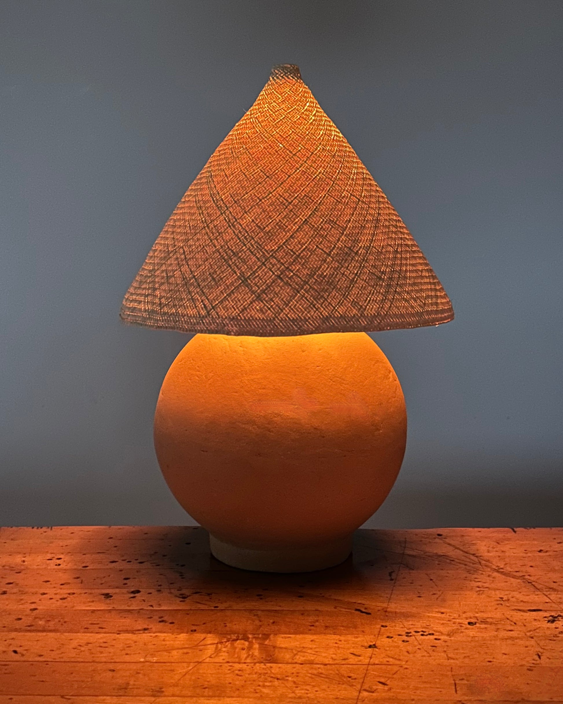 These table lamps are the work of two Mexican artists: ceramicist Eligio Zárate Blanco and award-winning weaver Belén Perez Garcia.